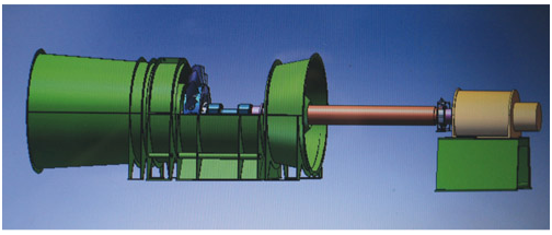 2.風(fēng)機(jī)采用單電機(jī)驅(qū)動(dòng),電機(jī)通過長軸安裝在風(fēng)機(jī)外面,這種安裝方式特別適合大型礦井前后期使用功率差別大的特點(diǎn),風(fēng)機(jī)設(shè)計(jì)不受電機(jī)尺寸限制,根據(jù)需要使用不同的電機(jī),節(jié)約能源,更換方便。